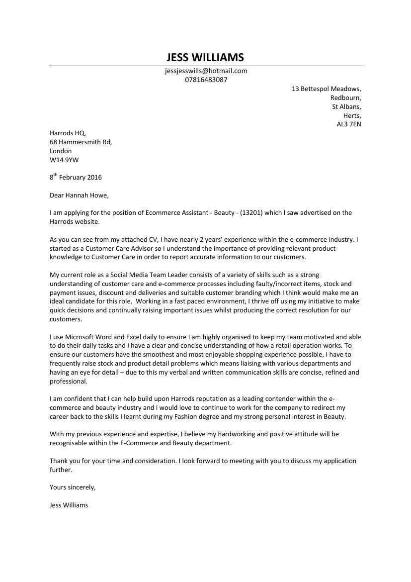 E Commerce Cover Letter - Look for a template with a header in which to provide contact details and room for an objective or summary statement in addition to lists of skills, professional experience, and education.. According to a study by careerbuilder, submitting a poorly written cover letter — or skipping one altogether — can land your application in the rejection pile. Careerealism's ariella coombs says you can take the direct approach and call the company if you don't know the name. This middle cover letter for graphic design jobs has the right alignment: With resumes you can get away with shrinking the font sizes and margins if you really need to fit in extra information, but this is questionable with cover letters. Learn how to write a cover letter for the post of store manager;